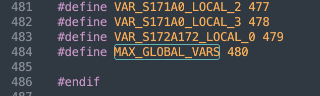 - Search for MAX_GLOBAL_VARS. This is the number of total global and local variables, combined in your project.