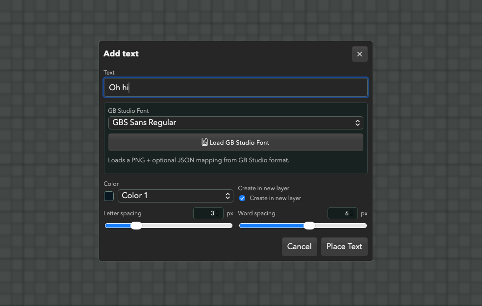 - GB Studio font support – load custom fonts and place directly into levels